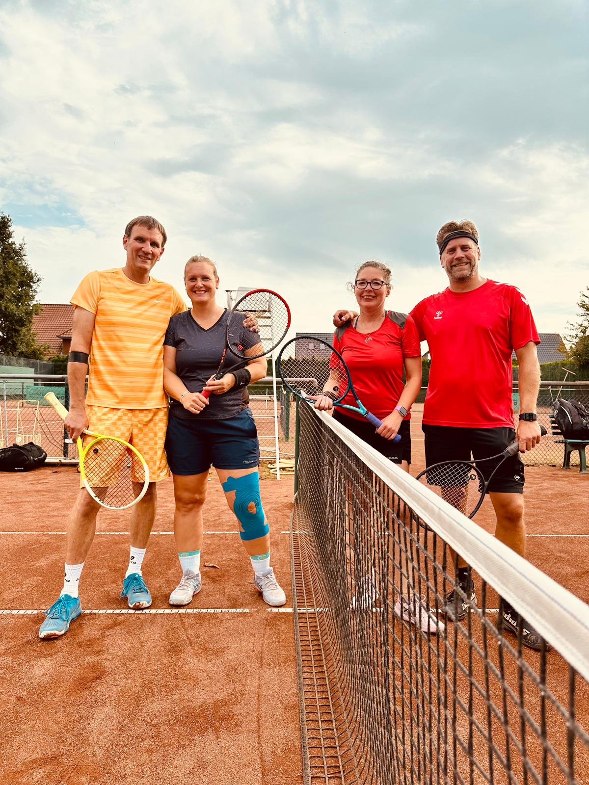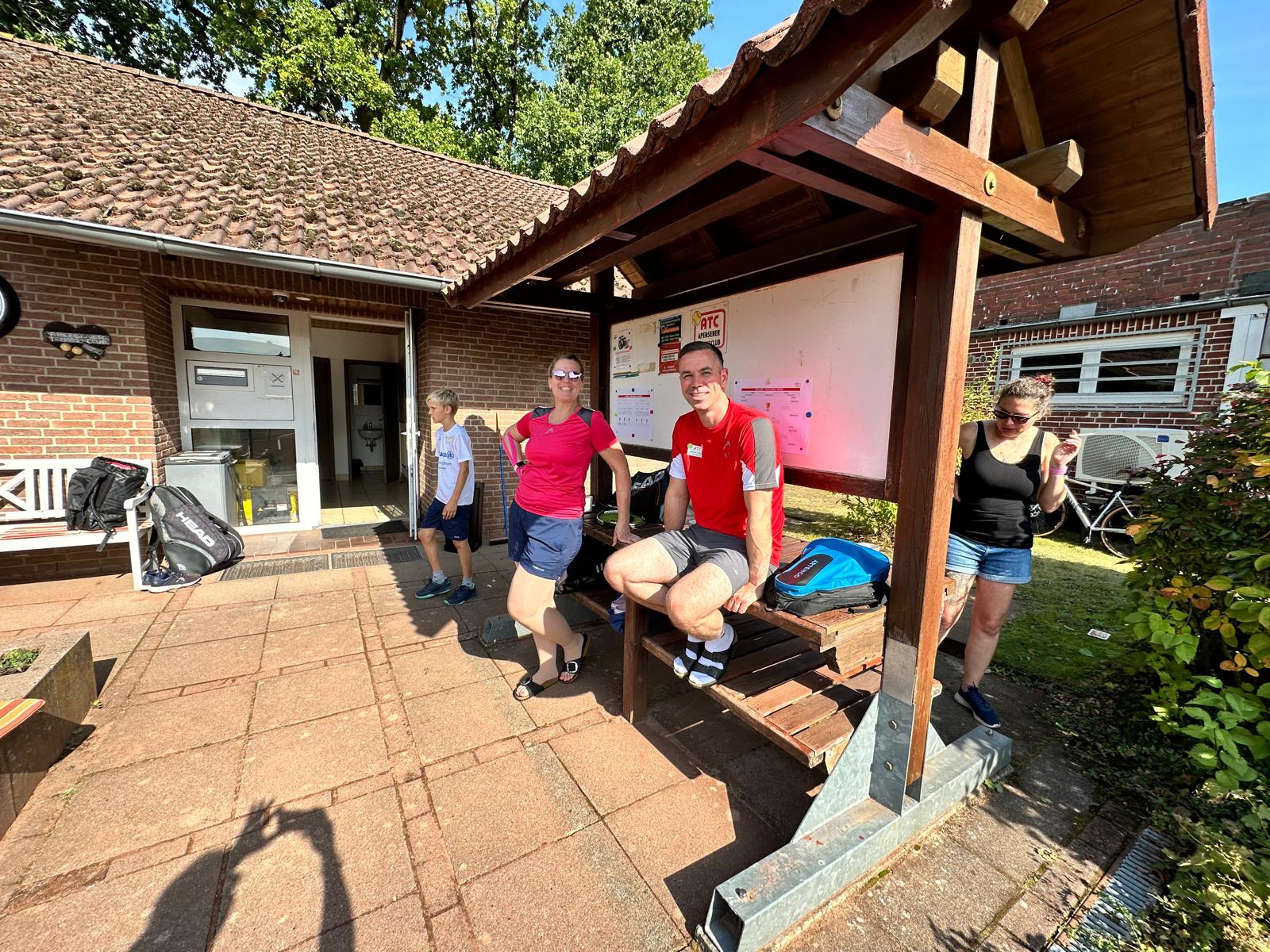 Die Mixed- Halbfinalspiele starteten mit einem Familienduell. Franzi und Ralf entschieden es gegen Bärbel und Jürgen für sich. Direkt nach dem Spiel gingen es für alle vier weiter zu einer Geburtstagsfeier. So läuft es im ATC.
